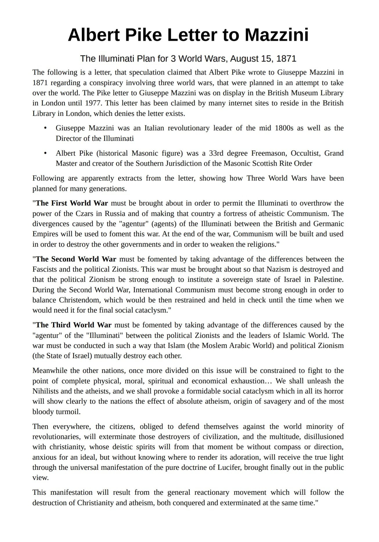 WWI, WWII, WWIII and the New World Order