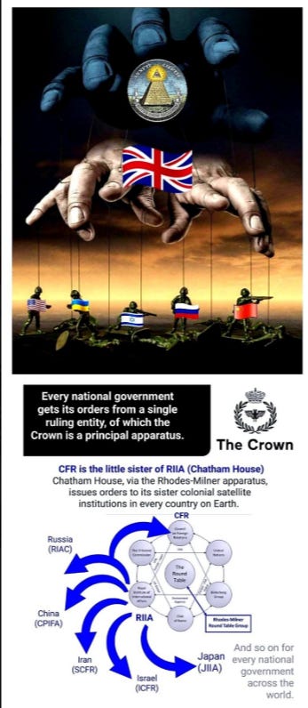 "The Real Government that holds the True Power lies hidden within the shadows, making all of the important decisions in secret." ... agenda is world domination.