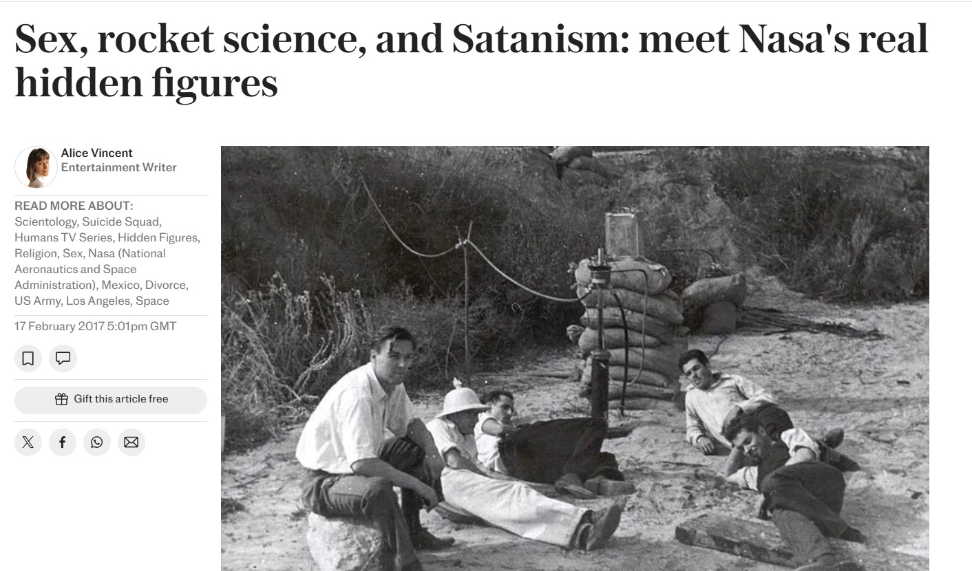 Sex, rocket science, and Satanism: meet Nasa's real hidden figures (17th February 2017). Telegraph UK