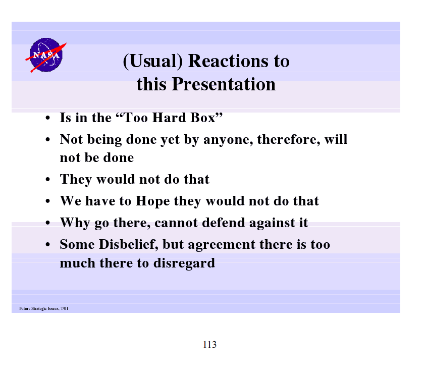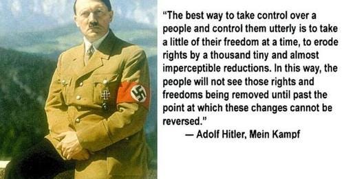 What our governments learned from Hitler was that human beings are like frogs in a pot of slowly boiling water. They do not know when they are in peril or mortal danger until it is too late. Returning to the NASA document:
