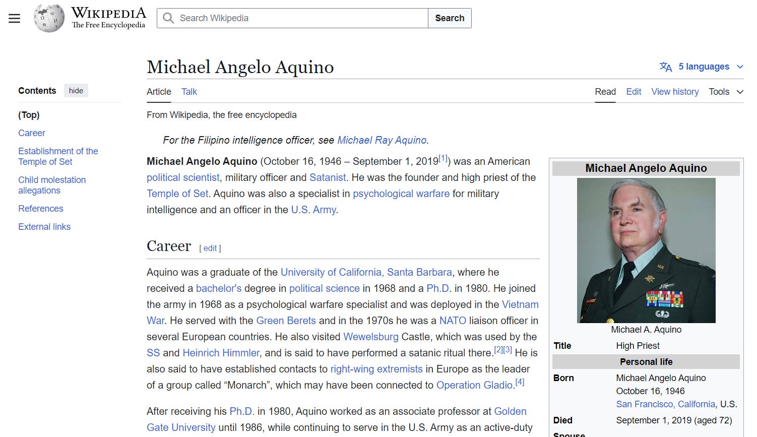 Nick Bryant. Aquino is a psychological warfare officer, head of an offshoot of the Church of Satan by LeVay. Yes, psywar is evil. The Devil is in the details.