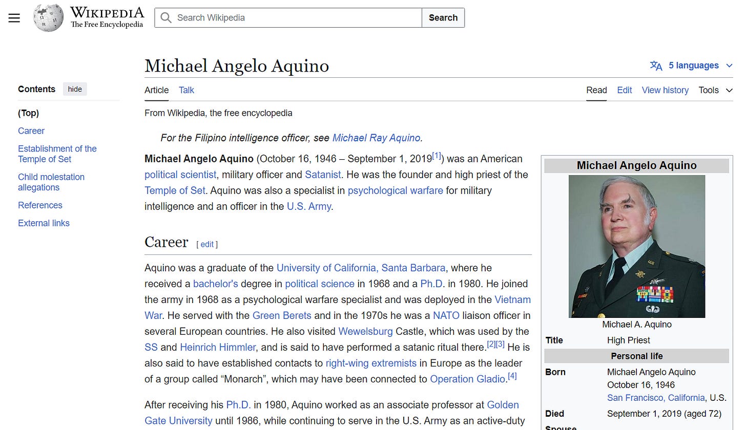 The officer in charge of psychological operations, Aquino, was a Satanist.