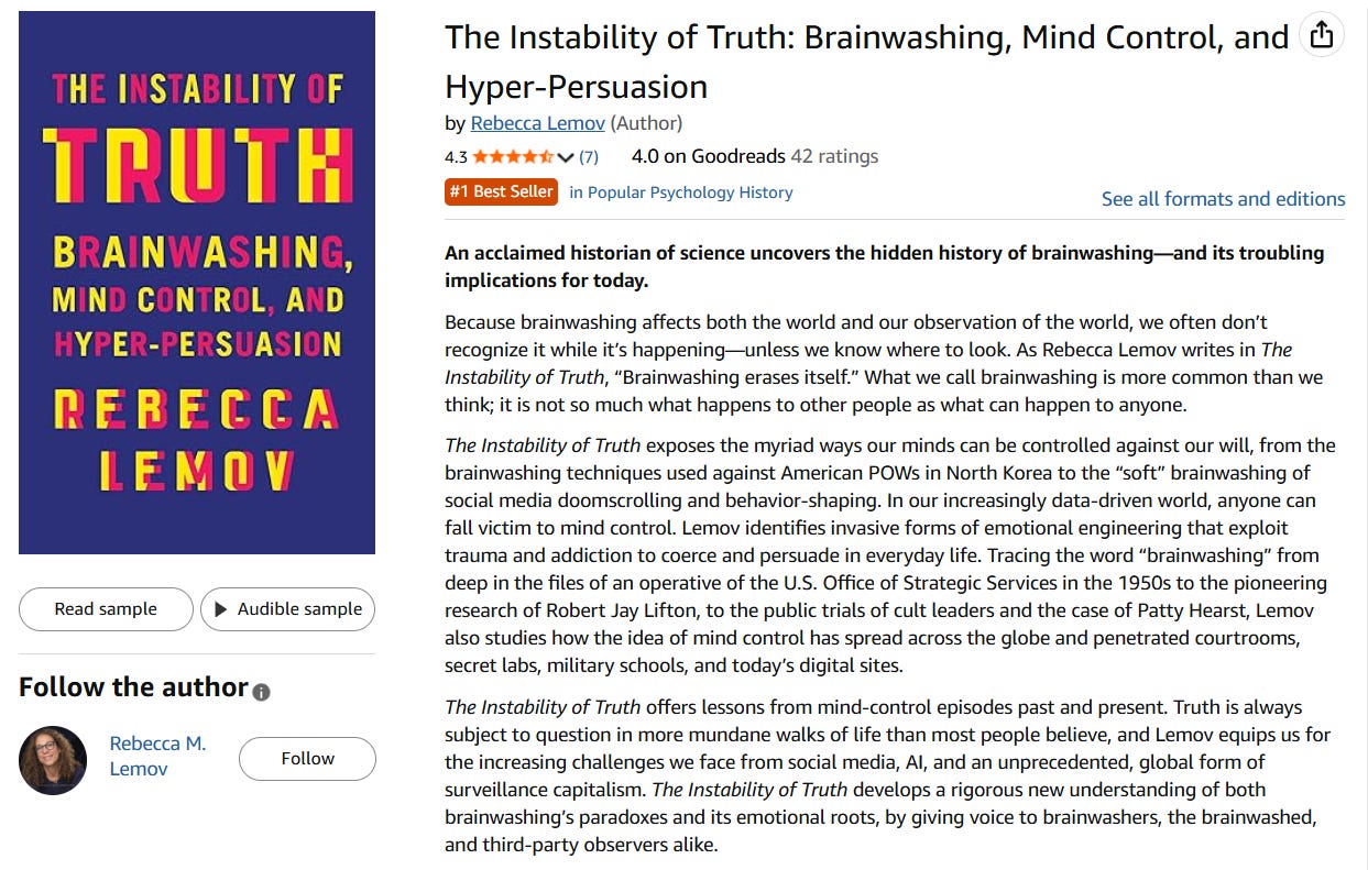 The Instability of Truth: Brainwashing, Mind Control and Hyper-Persuasion (2025) by Rebecca Lemov